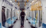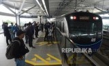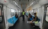 Penumpang saat mengikuti uji coba publik pengoperasian MRT fase I Koridor Lebak Bulus-Bundaran HI di Jakarta, Selasa (12/3). (FOTO : Republika/Putra M. Akbar)