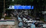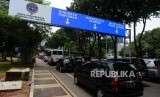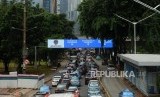 REPUBLIKA.CO.ID, JAKARTA -- Sejumlah kendaraan melintas di bawah rambu elektronik di kawasan Sudirman, Jakarta, Rabu (13/3).