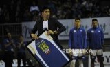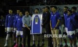 Mantan pemain Satria Muda Jakarta Christian Ronaldo Sitepu mengikuti acara seremoni penggantungan kostum pemain sebelum laga final IBL Pertamax 2018/2019 pada Kamis (21/3) di Britama Arena, Jakarta. (FOTO : Republika/Edwin Dwi Putranto)