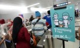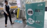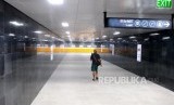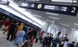Penumpang Pertama Pascaperesmian MRT. Penumpang Moda Raya Terpadu (MRT) masuk di Stasiun Istora Senayan, Jakarta, Ahad (24/3/2019). (FOTO : Republika/ Wihdan)