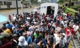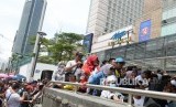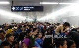Penumpang Pertama Pascaperesmian MRT. Penumpang Moda Raya Terpadu (MRT) berjubel di pintu masuk Stasiun MRT Bundaran HI, Jakarta, Ahad (24/3/2019). (FOTO : Republika/ Wihdan)