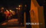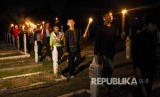 REPUBLIKA.CO.ID, BANDUNG -- Murid Sakola Ra'jat Iboe Inggit Garnasih melakukan renungan suci saat kegiatan Renungan Suci dalam rangka Peringatan Bandung Lautan Api ke-73 di Taman Makam Pahlawan, Kota Bandung, Sabtu (23/3) malam.