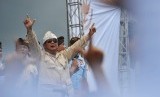 REPUBLIKA.CO.ID, DENPASAR -- Calon Presiden nomor urut 02 Prabowo Subianto melambaikan tangan kepada para pendukungnya dalam kampanye terbuka di lapangan Kompyang Sujana, Denpasar, Selasa (26/3).