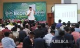 M Arief Rosyid dari Dewan Masjid Indonesia menyampaikan materi pada acara Rabu Hijrah berjudul Kebangkitan Ekonomi Umat, di Masjid Al Furqon, Universitas Pendidikan Indonesia (UPI), Kota Bandung, Rabu (27/3). (FOTO : Republika/Edi Yusuf)