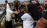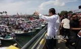 REPUBLIKA.CO.ID, BALIKPAPAN -- Calon presiden (capres) Joko Widodo (Jokowi) mengawali kegiatan kampanye terbuka di Balikpapan dengan mengunjungi Kampung Nelayan Manggar Baru, Kamis (28/3). Jokowi yang mengenakan kemeja putih menyempatkan diri menyapa warga yang berada di lokasi.
