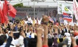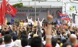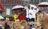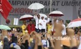 REPUBLIKA.CO.ID, Calon Presiden petahana Joko Widodo (tengah) berorasi dalam kampanye terbuka di Lapangan Karebosi, Makasar, Sulawesi Selatan, Ahad (31/3/2019).