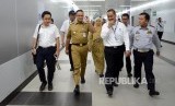 Gubernur DKI Jakarta Anies Baswedan saat akan keluar dari Stasiun MRT Bundaran HI, Jakarta, Senin (1/4). (FOTO : Republika/Putra M. Akbar)