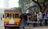 REPUBLIKA.CO.ID, JAKARTA -- Sejumlah pengunjung mengantre untuk menaiki di Monumen Nasional (Monas), Jakarta, Rabu (3/4).