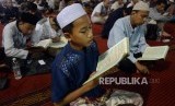 Sejumlah umat muslim membaca Al-Quran secara serentak saat Tabligh Akbar di Masjid Istiqlal, Jakarta, Rabu (3/4). (FOTO : Republika/Putra M. Akbar)