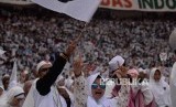 Sejumlah massa simpatisan memadati area kampanye akbar calon presiden dan calon wakil presiden nomor urut 02, Prabowo Subianto dan Sandiaga Uno di Gelora Bung Karno (GBK), Senayan, Jakarta, Minggu (7/4). (FOTO : Republika/Prayogi)