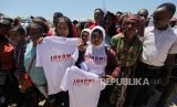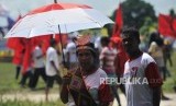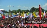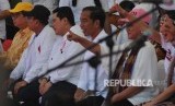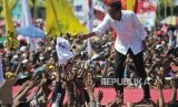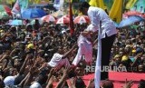 REPUBLIKA.CO.ID, KUPANG -- Calon presiden nomor urut 01 Joko Widodo membagikan kaus saat melakukan kampanye terbuka di Lapangan Sitarda, Kupang, Nusa Tenggara Timur, Senin (8/4).