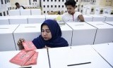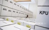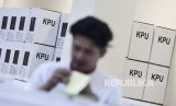 REPUBLIKA.CO.ID, JAKARTA -- Petugas Panitia Pemilihan Kecamatan (PPK) Pademangan menempelkan stiker pada kotak suara di GOR Pademangan, Jakarta, Senin (8/4/2019).