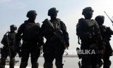 Sejumlah Pasukan Satuan Penanggulangan Teror (Satgultor) TNI usai simulasi penanggulangan teror di Hotel Mercure, Ancol, Jakarta, Selasa (9/4). (FOTO : Republika/Putra M. Akbar)