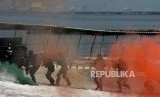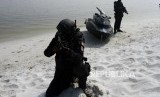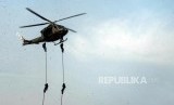 Sejumlah Pasukan Satuan Penanggulangan Teror (Satgultor) TNI saat simulasi penanggulangan teror di Hotel Mercure, Ancol, Jakarta, Selasa (9/4). (FOTO : Republika/Putra M. Akbar)