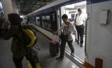 Sejumlah penumpang berjalan keluar dari kereta api bandara di stasiun BNI City, Jakarta, Selasa (9/4/2019). (FOTO : Antara/Nova Wahyudi)