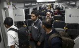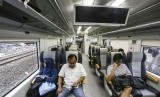 Penumpang berada didalam kereta api bandara menuju stasiun BNI City, Jakarta, Selasa (9/4/2019). (FOTO : Antara/Nova Wahyudi)