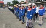 REPUBLIKA.CO.ID, JAKARTA -- Pegawai Pertamina mengikuti apel siaga kesiapan pengamanan dan distribusi BBM dan LPG di Terminal BBM Plumpang, Jakarta, Kamis (11/4/2019).