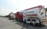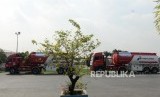 Jamin Pasokan BBM Pemilu Aman. Kendaraan angkut BBM mengikuti apel siaga kesiapan pengamanan dandistribusi BBM dan LPG di Terminal BBM Plumpang, Jakarta, kamis (11/4/2019). (FOTO : Republika/ Wihdan)