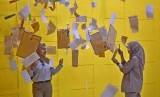 REPUBLIKA.CO.ID, JAKARTA -- Pengunjung berfoto di salah satu instalasi seni di wisata spot foto USS Arcade, Mal Senayan City, Jakarta, Kamis (11/4).