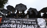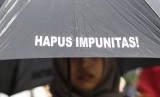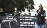 Aktivis Jaringan Solidaritas Korban untuk Keadilan menggelar aksi Kamisan ke-581 di depan Istana Merdeka, Jakarta, Kamis (11/4). (FOTO : Antara/Nova Wahyudi)