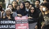 REPUBLIKA.CO.ID, JAKARTA -- Aktivis Jaringan Solidaritas Korban untuk Keadilan menggelar aksi Kamisan ke-581 di depan Istana Merdeka, Jakarta, Kamis (11/4).