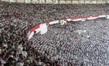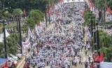REPUBLIKA.CO.ID, JAKARTA -- Pendukung pasangan Capres dan Cawapres nomor urut 01, Joko Widodo (Jokowi)-Ma'ruf Amin mengikuti Konser Putih Bersatu dalam rangka kampanye akbar pasangan pasangan tersebut di Gelora Bung Karno (GBK), Jakarta, Sabtu (13/4/2019).