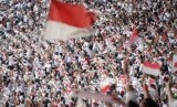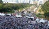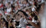 Massa pendukung hadir untuk mendengarkan pidato kampanye calon presiden nomor urut 01 Joko Widodo dan menghadiri Konser Putih Bersatu.
