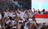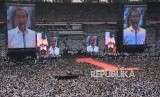 REPUBLIKA.CO.ID, JAKARTA -- Massa pendukung pasangan calon nomor urut 01, Jokowi- Ma'aruf Amin memadati Stadion Utama Gelora Bung Karno (SUGBK), Senayan, Jakarta, Sabtu (13/4).