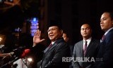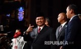 REPUBLIKA.CO.ID, JAKARTA -- Capres nomor urut 02 Prabowo Subianto tiba di lokasi untuk mengikuti debat Pilpres 2019 putaran kelima, di Hotel Sultan, Jakarta, Sabtu (13/4/2019).
