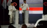 Pasangan capres-cawapres nomor urut 01 Joko Widodo (kiri) dan Ma'ruf Amin mengikuti debat kelima Pilpres 2019 di Hotel Sultan, Jakarta, Sabtu (13/4/2019). (FOTO : Republika/Prayogi)