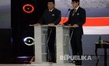 Pasangan nomor urut 02, Prabowo Subianto dan Sandiaga Uno, mengikuti debat kelima Pilpres 2019 di Hotel Sultan, Jakarta, Sabtu (13/4). (FOTO : Republika/Prayogi)