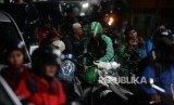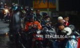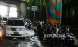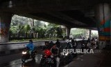 REPUBLIKA.CO.ID, JAKARTA -- Sejumlah pengendara sepeda motor berteduh di bawah Jalan Layang Non Tol (JLNT) saat hujan di Jalan Prapanca Raya, Kebayoran Baru, Jakarta, Senin (15/4).