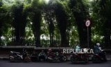 Sejumlah pengendara sepeda motor berteduh di bawah Jalan Layang Non Tol (JLNT) saat hujan di Jalan Prapanca Raya, Kebayoran Baru, Jakarta, Senin (15/4). (FOTO : Republika/Putra M. Akbar)
