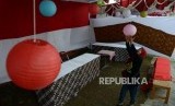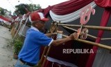 REPUBLIKA.CO.ID, DEPOK -- Warga menghias tempat pemungutan suara (TPS) di Kampoeng Pemilu Nusantara, Depok, Jawa Barat, Selasa (16/4).