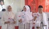 Cawapres No Urut 01 Ma'ruf Amin bersama keluarga saat mengunakan hak suaranya dalam pemilu 2019 di TPS 051, Koja, Jakarta, Utara, Rabu (17/4). (FOTO : Republika/Prayogi)
