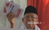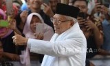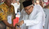 REPUBLIKA.CO.ID, JAKARTA -- Calon wakil presiden (cawapres) nomor urut 01, Ma'ruf Amin menggunakan hak suaranya dalam pemilu 2019 di TPS 051, Koja, Jakarta, Utara, Rabu (17/4).