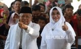 Mar'ruf Amin menggunakan hak suaranya bersama istrinya Wuri Estu Handayani.