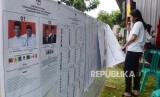 Sejumlah warga melihat contoh surat suara yang terpampang di TPS 30, Sawangan, Depok, Jawa Barat, Rabu (17/4). (FOTO : Republika/Putra M. Akbar)