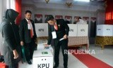 Sejumlah warga memasukan surat suara ke dalam kotak di TPS 30, Sawangan, Depok, Jawa Barat, Rabu (17/4). (FOTO : Republika/Putra M. Akbar)