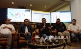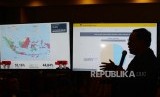 Wakil Direktur Direktorat Saksi Tim Kampanye Nasional (TKN) Lukman Edi memaparkan penjelasan di War Room Real Count, Hotel Gran Melia, Kuningan, Jakarta, Ahad (17/4). (FOTO : Republika/Putra M. Akbar)