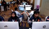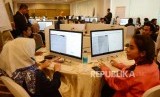 REPUBLIKA.CO.ID, JAKARTA --Sejumlah petugas saat menginput data formulir C1 di War Room Real Count, Hotel Gran Melia, Kuningan, Jakarta, Ahad (17/4).