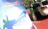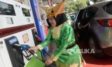 REPUBLIKA.CO.ID, JAKARTA -- Petugas menggunakan busana adat tradisional Indonesia melayani pembelian bahan bakar pertamax di SPBU 34-14210 Kelapa Gading, Jakarta, Senin (22/4/2019). Nuansa busana adat di SPBU tersebut untuk menyambut Hari Kartini.