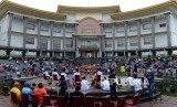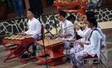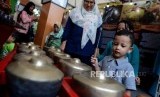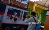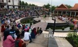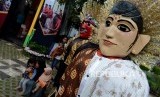 REPUBLIKA.CO.ID, JAKARTA -- Pengunjung saat berfoto dengan ondel-ondel pada acara Festival Warisan Budaya Tak Benda di kawasan Setu Babakan, Jakarta, Ahad (28/4). Festival Warisan Budaya Tak Benda tersebut menampilkan sejumlah kesenian Betawi.