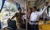 REPUBLIKA.CO.ID, JAKARTA -- Gubernur DKI Jakarta Anies Rasyid Baswedan melakukan prauji coba tiga bus listrik pertama untuk layanan Transjakarta.