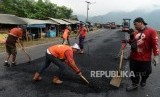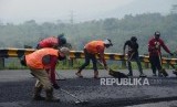 REPUBLIKA.CO.ID, TASIKMALAYA -- Pekerja saat menyelesaikan perbaikan Jalan Lingkar Gentong, Tasikmalaya, Jawa Barat, Senin (29/4). Perbaikan ruas jalan yang biasa dilalui oleh para pemudik itu dilakukan untuk persiapan menjelang mudik lebaran.