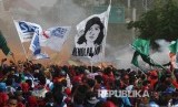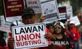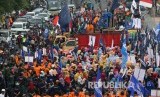 REPUBLIKA.CO.ID, SURABAYA -- Ribuan buruh dari berbagai serikat pekerja berunjuk rasa saat memperingati Hari Buruh Internasional di kawasan Tugu Pahlawan, Surabaya, Jawa Timur, Rabu (1/5/2019).
