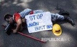 REPUBLIKA.CO.ID, BANDUNG -- Ratusan massa yang tergabung dalam Kongres Aliansi Serikat Buruh Indonesia (KASBI) melakukan aksi pada peringatan Hari Buruh di Jalan Diponegoro, Kota Bandung, Rabu (1/5).
