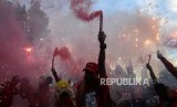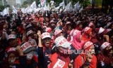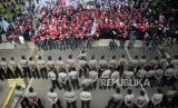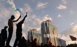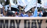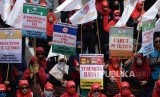REPUBLIKA.CO.ID, JAKARTA -- Buruh dari sejumlah elemen memperingati Hari Buruh Internasional di Kawasan Patung Kuda, Monas, Jakarta, Rabu (1/5).