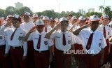 REPUBLIKA.CO.ID, JAKARTA -- Gubernur DKI Jakarta Anies Baswedan memimpin upacara peringatan Hari Pendidikan Nasional di kawasan Monumen Nasional (Monas), Jakarta, Kamis (2/5).