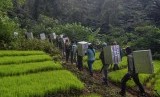 Sejumlah relawan dan petugas BKSDA serta International Animal Rescue (IAR) membawa Kukang Jawa (Nycticebus javanicus) untuk dilepasliarkan ke tempat Suaka Margasatwa Gunung Sawal (SMGS), Kabupaten Ciamis, Jawa Barat, Jumat (3/5/2019). (FOTO : Antara/Adeng Bustomi)